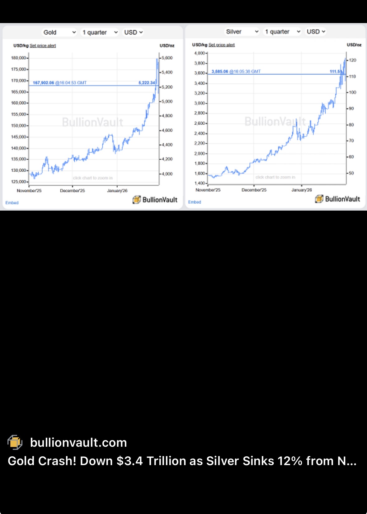 전통적으로 금융시장에서 불확실성이 커지면 금과 은 같은 귀금속이 오르는 경향이 있습니다. 하지만 워시 지명 이후 금·은 가격이 급락하며 금과 은 시장이 큰 충격을 받았습니다: